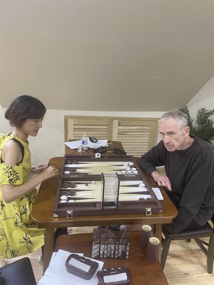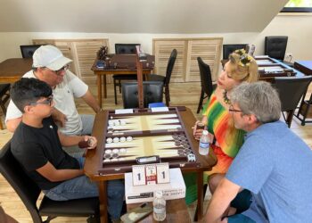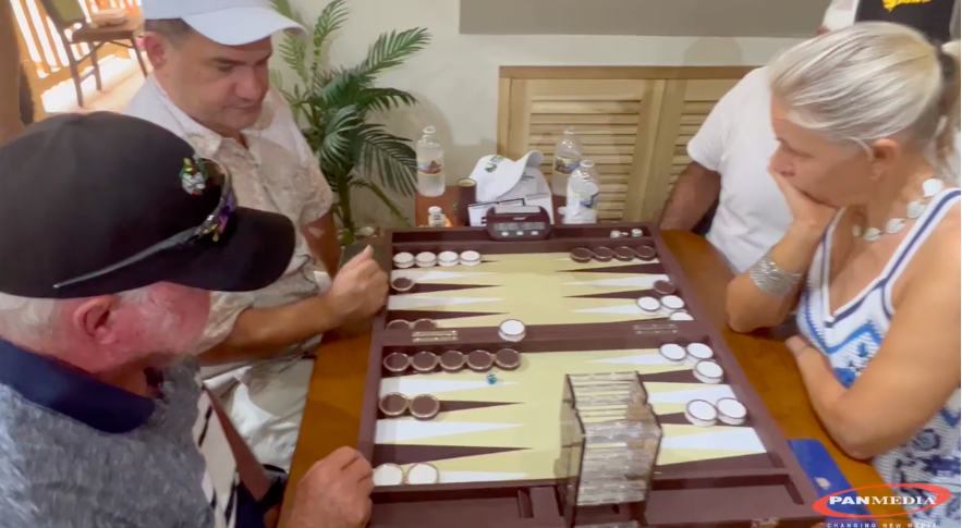 CPJ’s Tom Tyler studying a Frankie Hart move at last Saturday’s Jamaica Open Backgammon Tournament.